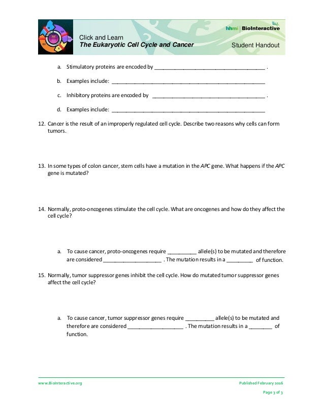 Eukaryotic cell cycle and cancer answer key. THE EUKARYOTIC CELL CYCLE AND CANCER. What are the three stages of cell division. The Results for Biointeractive The Eukaryotic Cell Cycle And Cancer Answer Key.